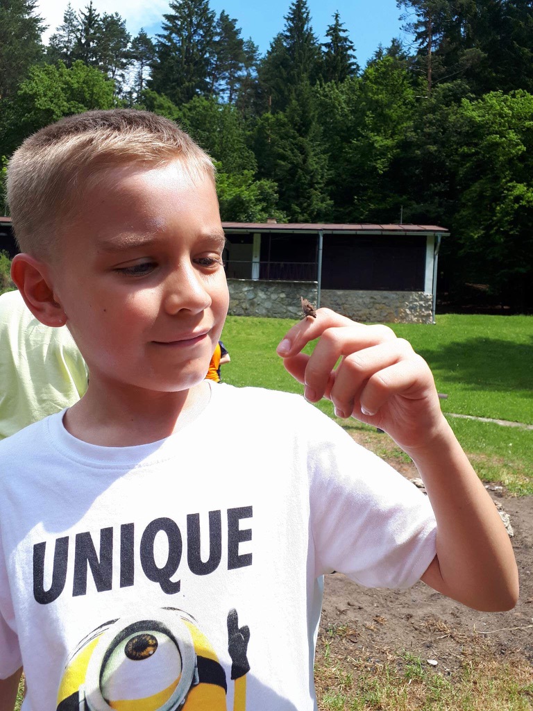 Učíme sa hravo s prírodou. Vytváranie nášho ochrancu školy v prírode... Chlapcom sa darilo!